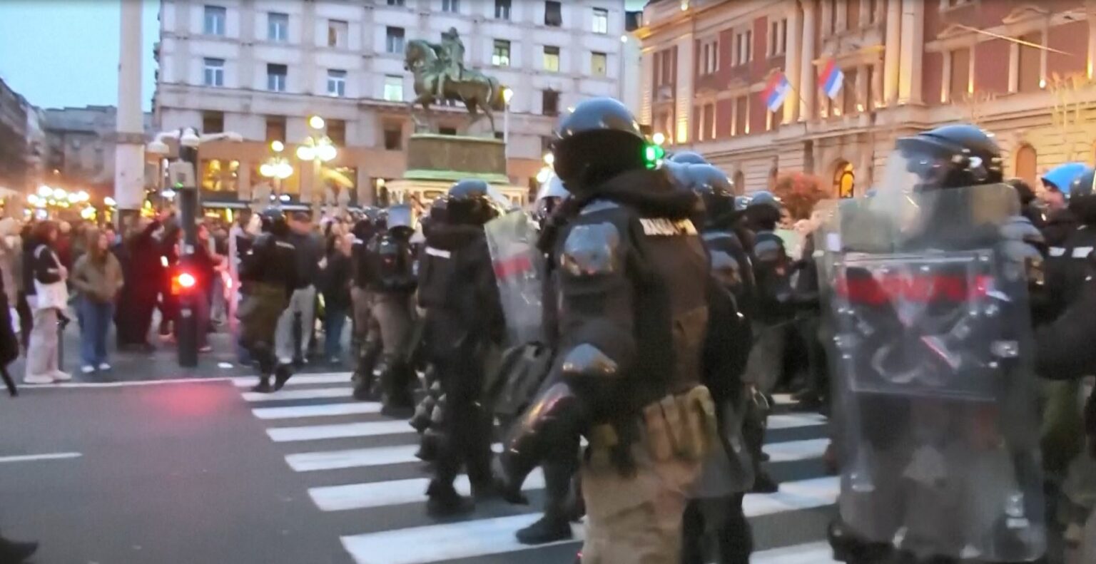 Turmat në qendër të qytetit të Beogradit u përleshën me policinë, e cila përdori shkopinj gome për të shpërndarë demonstruesit që brohorisnin “qen” dhe “tradhtarë”, sipas një dëshmitari të Reuters. Policia tha se kontrolli në zyrat e Universitetit të Beogradit ishte pjesë e një hetimi për vdekjen e një studenteje 25-vjeçare, të premten e kaluar, pasi ra nga një dritare në një ndërtesë fakulteti aty pranë.