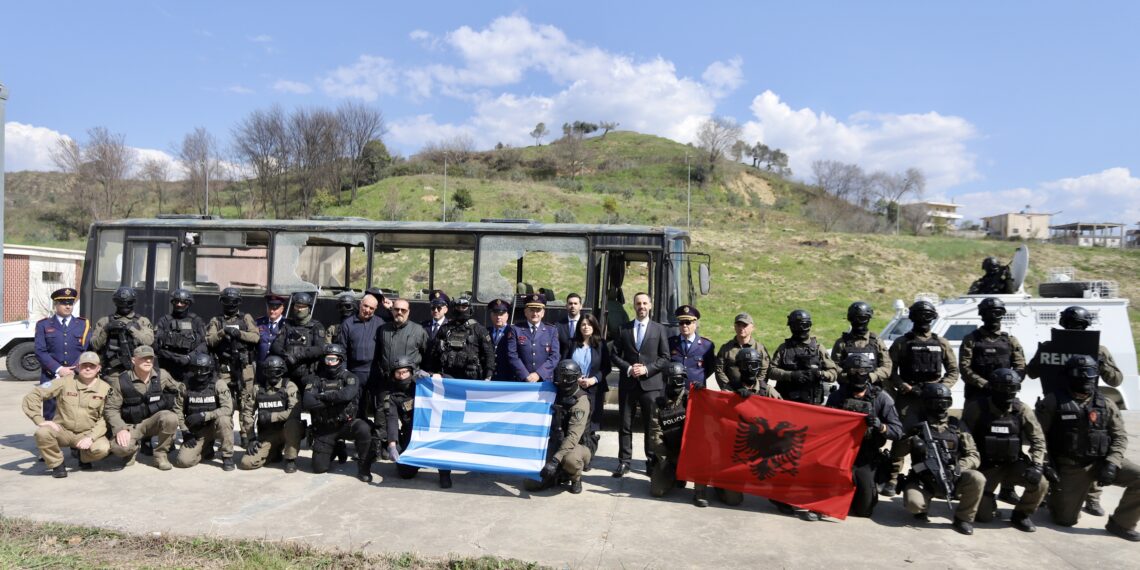 Ministri i Punëve të Brendshme, Besfort Lamallari, mori pjesë në ceremoninë e përfundimit të stërvitjes së përbashkët mes forcave speciale të Policisë së Shtetit, RENEA, dhe njësisë elitë të policisë greke EKAM.