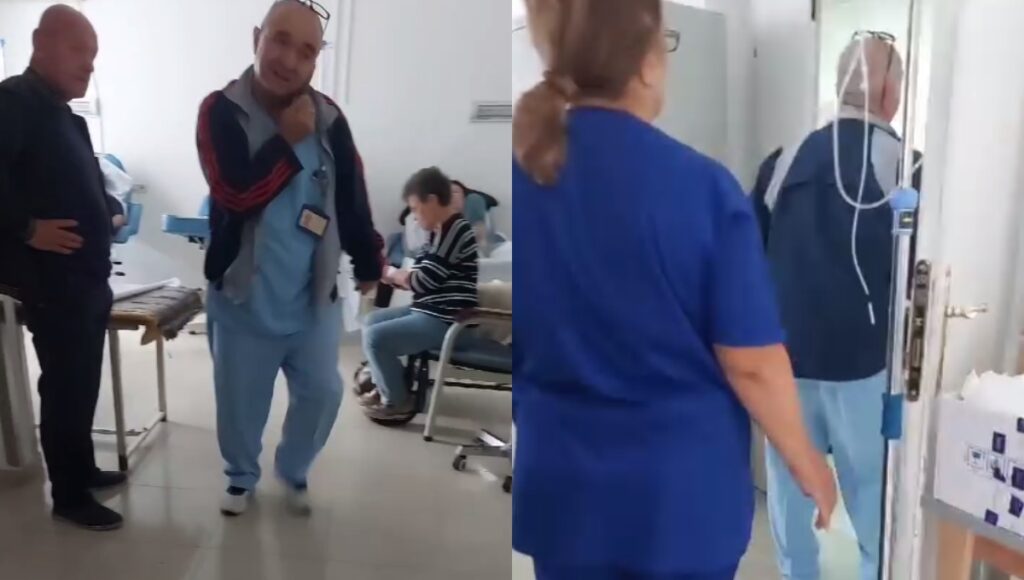 Përmes një mesazhi dërguar gazetarit, një prej pacientëve denoncon se kryeinfermieri Alimani kishte tmerruar pacientët, duke i kërcënuar se do të merrte shkopin e bejsbollit dhe se do t’i nxirrte me dhunë jashtë.