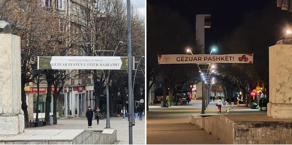 Diskriminimi i muslimanëve arrin kulmin në Korçë. Bashkia heq banderolat Gëzuar Bajramin dhe vendos Gëzuar Pashkët