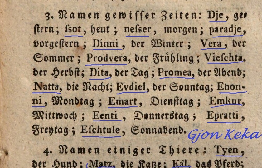 Ja se si janë shkruar e folur më parë ditët e javës, numrat dhe shumë fjalë të tjera shqipe
