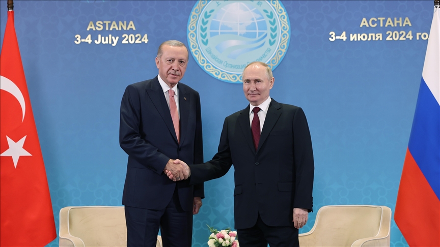 Presidenti turk Recep Tayyip Erdoğan dhe homologu i tij rus Vladimir Putin u takuan sot për të diskutuar çështjet dypalëshe dhe globale në Astana, kryeqytetin e Kazakistanit, ku liderët janë mbledhur për një samit të Organizatës së Bashkëpunimit të Shangait, raporton Anadolu.